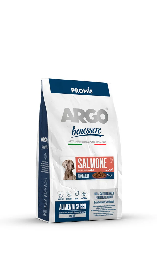 מזון פרמיום מלא לכלבים בוגרים בכל הגדלים על בסיס בשר סלמון – Argo Benessere